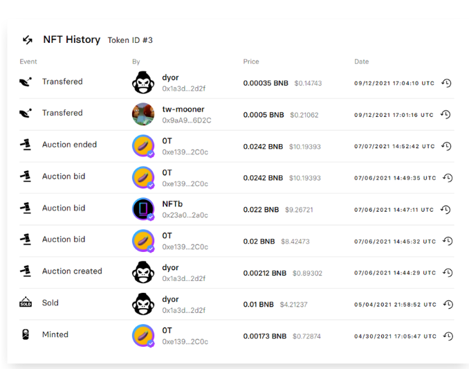 In addition, the detailed transaction history of NFTs is introduced into the NFTb market. This will allow for a more comprehensive overview of NFTs - minting, transfer, auction creation, bidding, auction closing, transfer - providing a smoother experience for upcoming game releases.