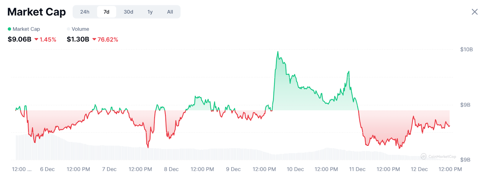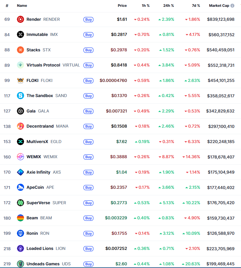 Where are the GameFi degens as the sector’s market cap dipped 1% to $9 billion? Trading volume took a brutal dive, plunging 77% to $1.3 billion.