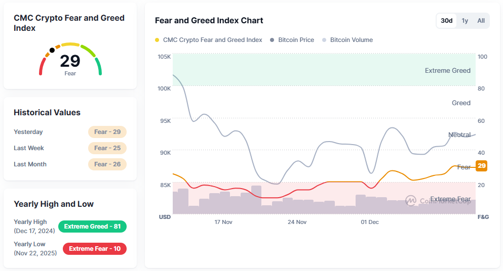 The trenches are still fearful, but there is a slight improvement in sentiment as CMC’s Fear & Greed Index climbed from 25 to 29 week-on-week.