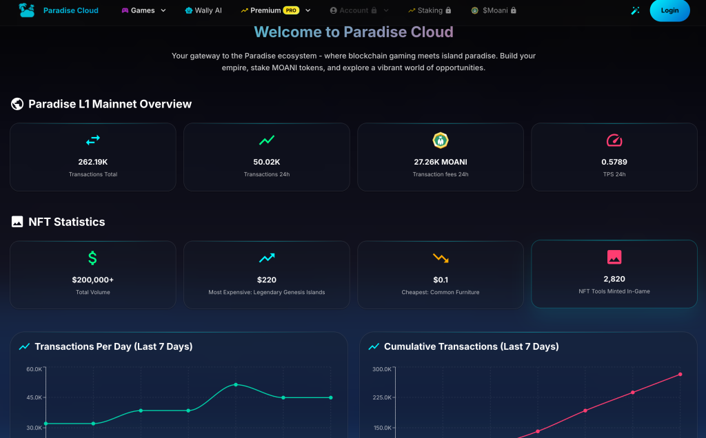 The UX for Paradise Chain is streamlined thanks to Paradise Cloud, a web platform that enables users to perform non-gaming activities such as moving tokens, staking or using DeFi services.