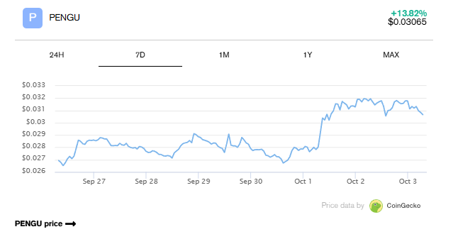 El índice PENGU de los Pudgy Penguins sube dos dígitos mientras los predictores son optimistas sobre el impulso alcista.