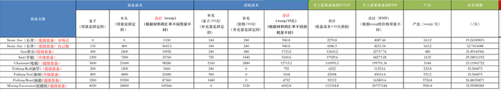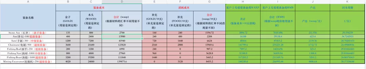 De acordo com o modelo econômico do artigo anterior, incluindo a prática pessoal, se você tiver fundos limitados, para experimentar o jogo, é recomendável usar o machado para cavar madeira, e não é recomendável usar o machado de pedra mais barato (este o equipamento pode gerar Lucrativo negativo, porque apenas cavando madeira, alimentos e moedas de ouro são consumidos, o preço dos alimentos e moedas de ouro é alto, e o lucro é diretamente negativo);