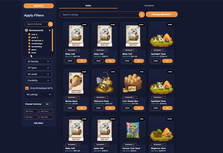 Essas ferramentas podem ser adquiridas através do mercado secundário (AtomicHub), transferidas entre fazendeiros e jogadores, ou usadas "Craft" para sintetizar ferramentas no jogo. Diferentes ferramentas têm diferentes benefícios funcionais e custos.