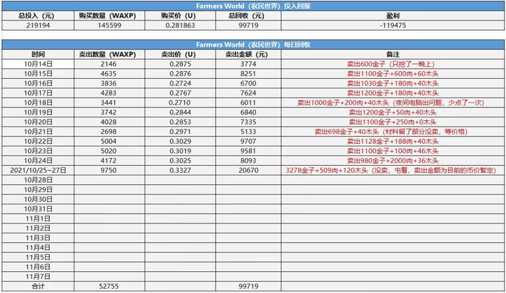 De acordo com o modelo econômico atual, é basicamente estável em cerca de 30 dias para retornar ao capital (ainda flutuará com as mudanças do mercado). Os jogadores podem calcular o melhor plano de itens com base na saída do item e na relação entre oferta e demanda, e a renda diária varia de acordo com o preço das moedas de material e WAXP.